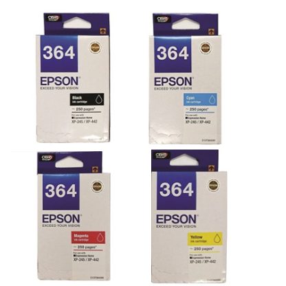 Singapore Original Epson 364 Black (C13T364190) and Cyan (C13T364290) and Magenta (C13T364390) and Yellow (C13T364490) Ink For Printer: XP-245, XP-442