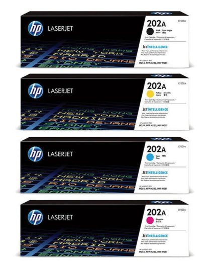 Singapore Original HP-202A Black (CF500A) and Cyan (CF501A) and Magenta (CF502A) and Yellow (CF503A) Toner for Printer: HP Color LaserJet Pro M254dw, M281fdw