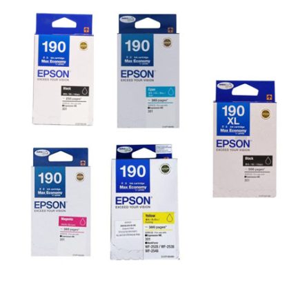 Epson Ink (190) C13T190190 Black C13T190290 Cyan C13T190390 Magenta C13T190490 Yellow and C13T191190 XL Black