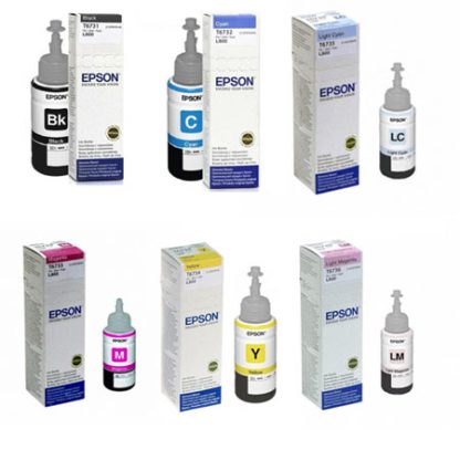 Ink Model: T673 Black (C13T673100) / Cyan (C13T673200) / Magenta (C13T673300) / Yellow (C13T673400) / Light Cyan (C13T673500) / Light Magenta (C13T673600) – 70ml